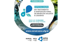 A especialização em Tratamento e Disposição Final de Resíduos Sólidos e Líquidos (CERSOL) divulga que foi prorrogado o prazo para os interessados se inscrevem no curso. As aulas serão realizadas entre 02/06/2023 a 01/06/2025, sempre às sextas-feiras, das 18h30 às 22h e aos sábados das 8h às 13h, na Escola de Engenharia Civil e Ambiental.