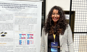 A partir da análise da sequência peptídica E2(SW)6E2, a pesquisa avaliou o comportamento das fibras em meio aquoso e demonstrou a alta estabilidade das estruturas, inclusive em modelos maiores. A capacidade de reter substâncias e interagir com o ambiente corporal coloca essas nanofibras como candidatas promissoras para o desenvolvimento de terapias mais eficazes e personalizadas. Para Karinna, a inovação pode representar um avanço significativo na forma como tratamentos médicos são realizados no futuro. Confira a entrevista na íntegra a seguir.